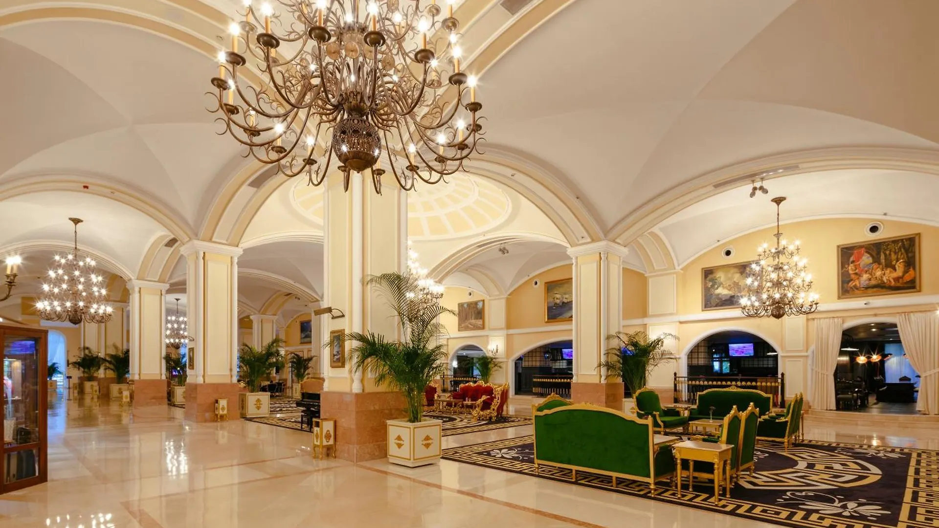 Kremlin Palace Antalya is situated in the Lara Coast district, a 10-minute ride from Istanbul Bazzar, and boasts a tennis court, aerobics, and karaoke. Wi-Fi is offered in public areas as well as a bureau de change and a cash machine on the premises.