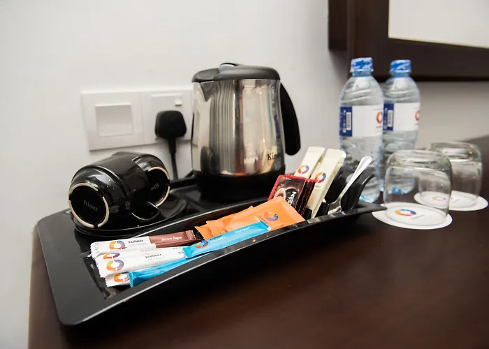 Tea and coffee making facilities, a fridge, and an oven are provided in the rooms.
